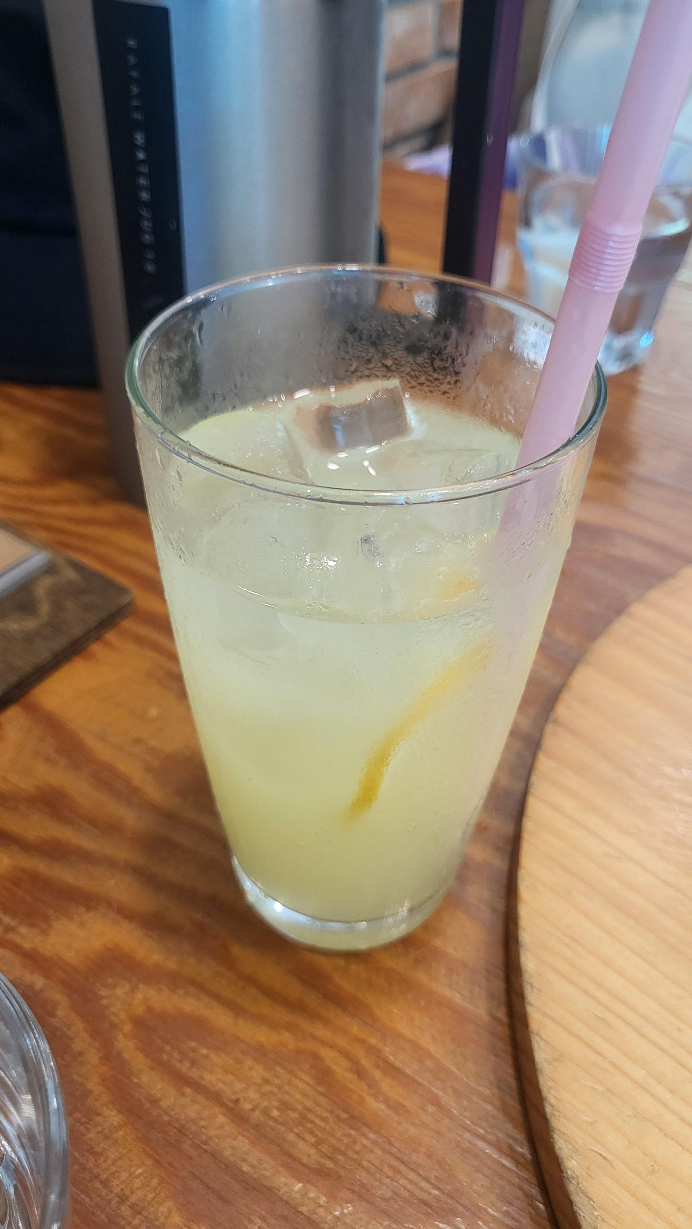 두 번째 사진은 레몬 에이드예요. 더운 날씨에 시원하게 한 잔 마시니 기분이 확 좋아지더라고요. 적당히 달고 상큼한 맛이 아주 만족스러웠어요.