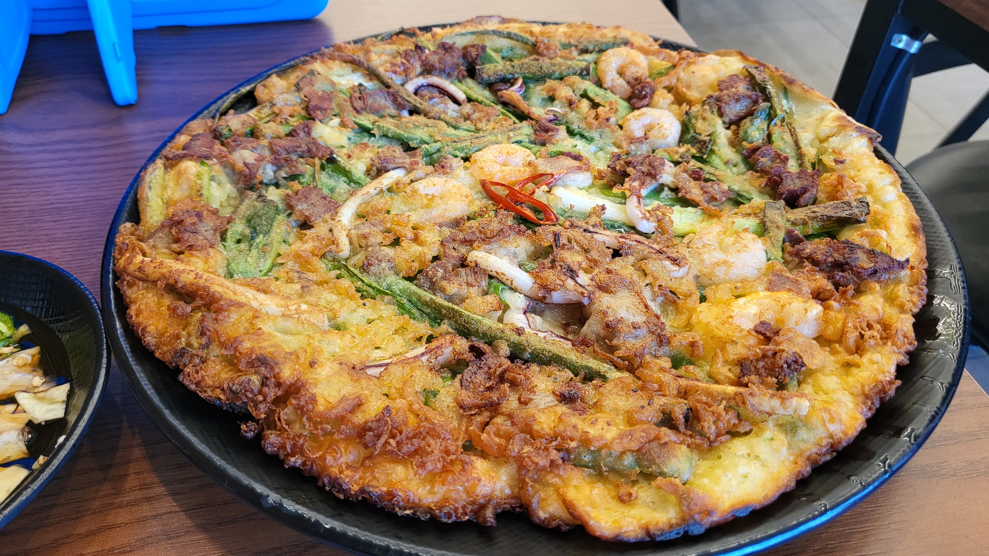 겉은 바삭하고 속은 촉촉! 해물이 듬뿍 들어가 있어서 씹을 때마다 감칠맛이 퍼졌어요. 기름지지 않고 간도 적당해서 맛있게 먹었어요.